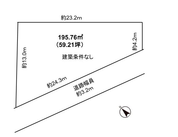 - 建築条件なし 約59坪売土地・更地