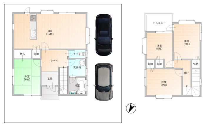 1階にLDK+和室+水回り、2階に3つの洋室がある4LDKのお家です🏠